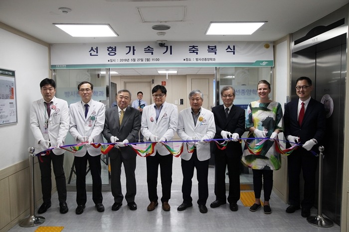 [의학신문·일간보사=한윤창 기자] 강동성심병원(원장 이주헌)은 지난 27일 최첨단 방사선 암 치료기인 ‘Versa HD APEX’ 개소식을 진행했다. 이날 개소식에는 이주헌 병원장을 비롯해 주요 보직자들과 주한 스웨덴대사관 엘레노어 칸터 참사관, 방사선종양학과 한태진 교수 등이 참석했다.